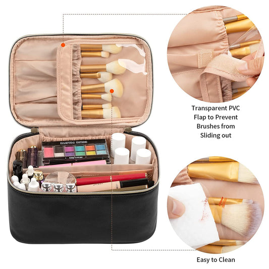 Large Capacity Travel Makeup Bag with Handle & Dividers - Portable Organizer