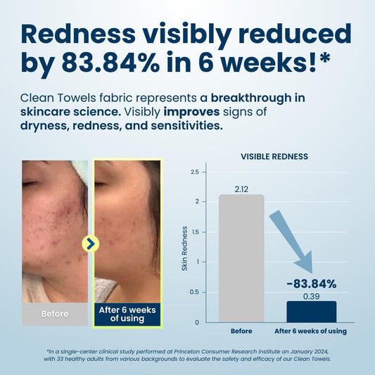 Clean Towels XL™: Ultra-Soft, Biobased Face Towelettes for Sensitive Skin (50 Count)